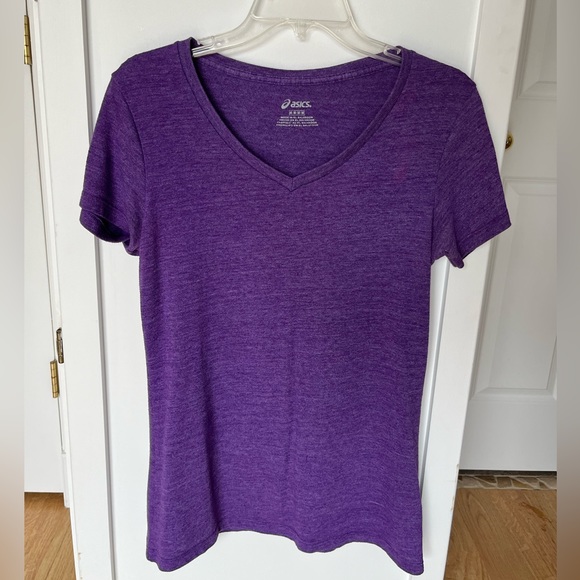 Purple v-neck t-shirt. See slight discoloration in last photo.
