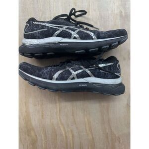 The product is a pair of ASICS Women's Gel-Nimbus 24 FF Blast Silver Black Sneakers in size 10.5M. These athletic sneakers feature a sleek black color with silver accents, designed for women who value both style and performance. The ASICS GEL-Nimbus model ensures comfort and support, making them suitable for various activities. Perfect for individuals looking for a fashionable and reliable athletic shoe option.