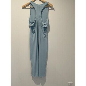 The ASICS Women's Blue Midi Athletic Dress in Size Large is a stylish and functional piece perfect for a casual occasion. Made from a blend of polyester and spandex, this sleeveless dress features a round neckline, racerback strap, and a quick-dry, moisture-wicking design. The knee-length dress is breathable and provides a comfortable cool touch, making it suitable for all seasons - winter, summer, fall, and spring. With its solid color and tank dress style, this ASICS dress offers both style and practicality for active women on the go.