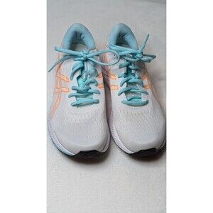 Upgrade your running experience with these ASICS Women's GEL-Excite 9 Running Shoes in White/Orange Pop. With a lace-up closure, these shoes have a low top shoe shaft style, making them perfect for gym and training, cross-training, crossfit, cheerleading, running, and jogging. The shoes come in a size 10 US and 8 UK, with an EU size of 42.