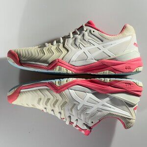 ASICS Women's Gel Resolution 7 Tennis Shoes Beige/Pink Non-Marking Sole Size 8