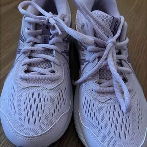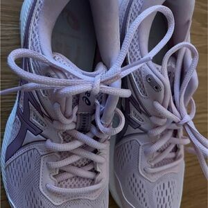 Step up your running game with these ASICS women's shoes. Featuring a stylish lilac design with purple trim, these shoes offer both comfort and performance. Never worn, size 8.5!