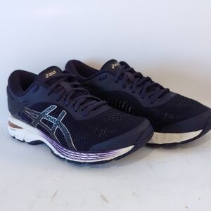 Dark Purple athletic shoes with white and purple accents. Engineered for comfort and performance. These shoes have a reinforced center sole to control foot movement. Perfect for running and active lifestyles. Gel inserts add comfort and cushioning for those active days! In Great Condition.