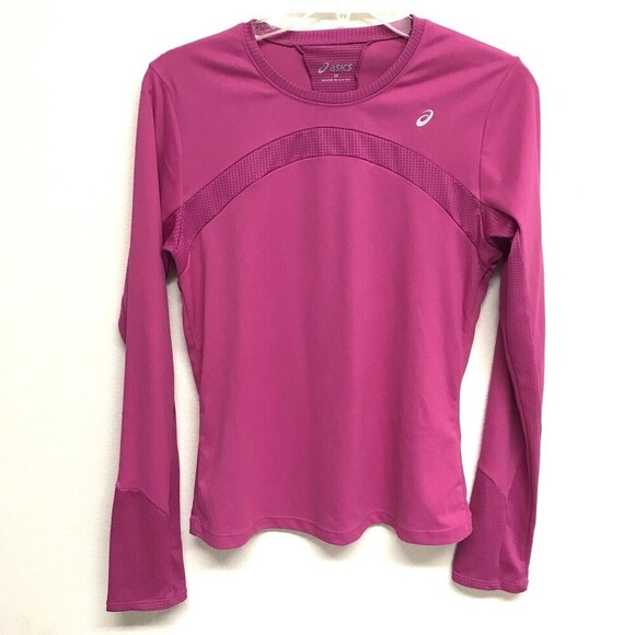 ASICS Womens Size Medium Long Sleeve Athletic Shirt Top Pink 2 tone Vent.