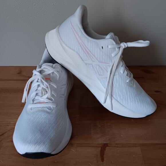 The ASICS Women's Versablast 4 Running Shoes in White and Light Ube are designed for comfort and performance in various activities such as gym workouts, walking, and running. Featuring a breathable mesh upper, cushioned outsole, and lace-up closure, these shoes provide a secure fit while allowing for flexibility. The rubber outsole offers good traction, making them suitable for both indoor and outdoor use. Perfect for the summer, fall, and spring seasons, these sneakers with a low top shoe shaft style and standard shoe width are a versatile option for active women looking for quality athletic footwear.
