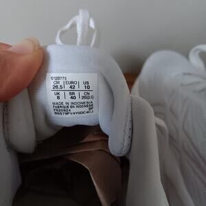 Good condition. Soles have some yellowing, faint dirt stains on both toes (did not show up well on photo), brown dot the size of a pencil eraser on inside of right shoe as shown