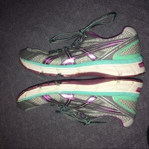 ASICS athletic, comfortable, teal and purple workout sneakers. In good, used condition. From a pet and smoke free house. Happy to bundle!