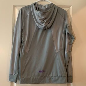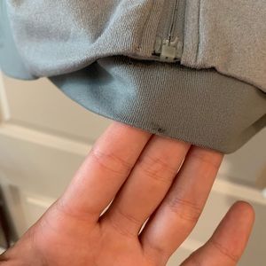 Size medium, ASICS gray zip up jacket in great condition! Only worn a handful of times, with a very small stain on inside bottom- not noticeable when wearing. Light fabric and sleek look! Willing to give measurements and accept most offers. Bundle to save money on my closet!