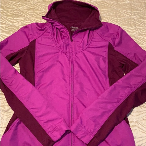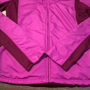 Never worn. Super soft and warm jacket with zippered pouch on the back. Maroon and pink/purple color zippered jacket