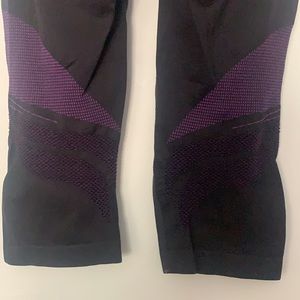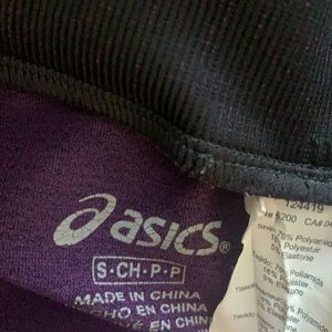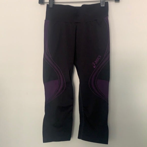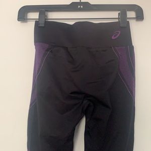 Black ASICS leggings with beautiful purple details include mesh. Very comfortable and hardly worn.