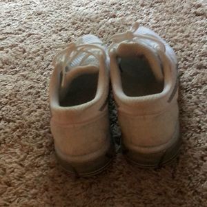 All white ASICS running shoes