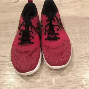 - ASICS running shoes pink and black womens …