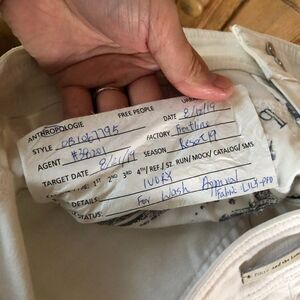 Features: These were sample jeans - high waisted and in white / ivory wash. Pockets at the front and back. Button and zipper closure.