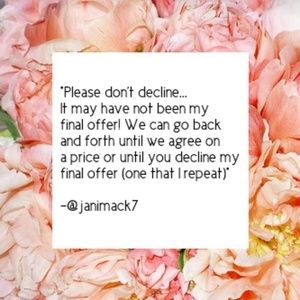 "Please don't decline... It may have not been my final offer! We can go back and forth until we agree on a price or until you decline my final offer (one that I repeat)"