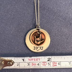 ASL I Love You ILY Sign Language Pendant Necklace Heart with 18" Chain