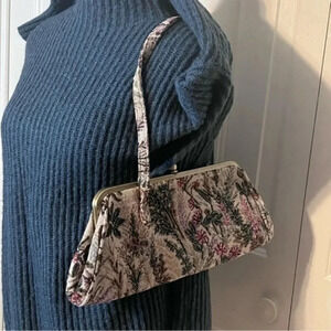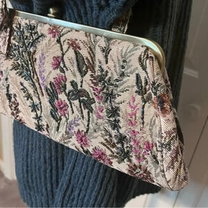 ASLI Floral Beaded Tapestry VTG Purse Handbag Antique Brass tone clasp