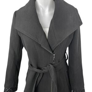 ASM Asmanto Black Zip Up Long Sleeve Wide Collar Belted Trench Coat Jacket Size 40 40/ US 8