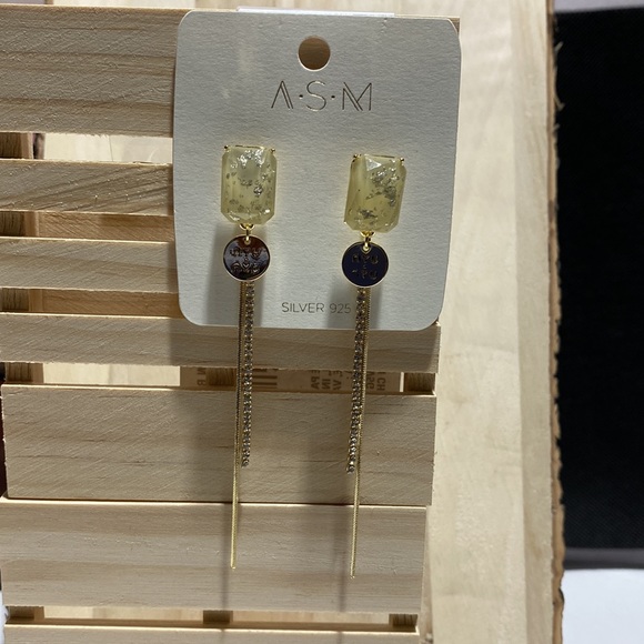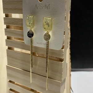 ASM Gold Yellow Rhinestone String Dangle Earring