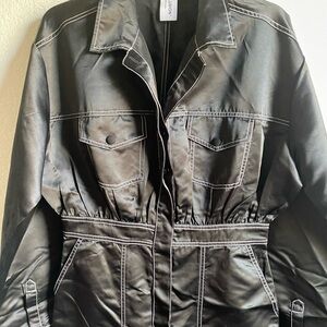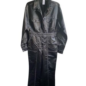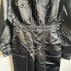 ASO Adrienne Houghton Collusion Y2K Satin Sleek Black Moto Wide Leg Jumpsuit 6