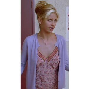 Hi, you are purchasing a dress by Plenty (aka. Plenty by Tracy Reese). It is cream-colored with an all-over pink/orange/green print and lace accents. This dress is a size small, made of 100% silk, and in mint condition. Buffy Summers (Sarah Michelle Gellar) wore an identical dress in the Buffy the Vampire Slayer episode “Homecoming” (season 3, episode 5). Check out my other listings for more screen-accurate clothing.