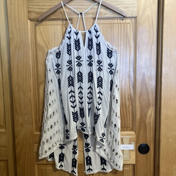 Chic blouse by Free People. Ivory base with black embroidery. Ideal for everyday wear.