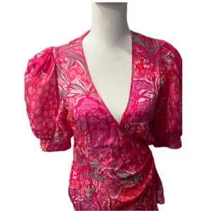 ASO Fallon Carrington Dynasty Dundas Lilly Jacquard Floral Pink Dress Very Rare