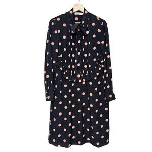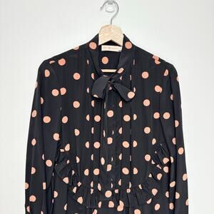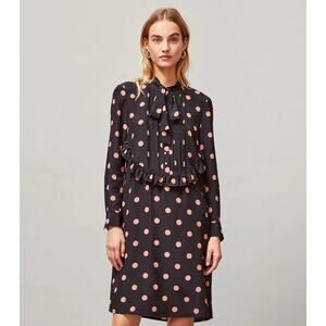 ASO Mandy Moore Tory Burch Printed Ruffle Bow Neck Polka Dot Silk Dress | SZ 4