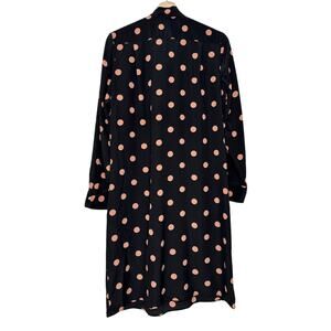 A classy dress for a stylish woman! This black number features pink polka dots all over with a matching necktie. Silk crafted dress with ruffles and relaxed fit. This gorgeous tory burch design also features side pockets and a knee grazing length.