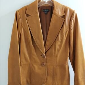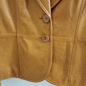 Vntg Y2K BUTTERY Soft LEATHER Jacket Sz M Mustard Yellow Elle McPherson style BOHO Retro Minimalist Avante Garde Preppy Jacket Blazer Coat Spring Autumn