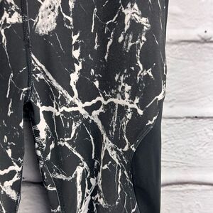 Stylish ASOS 4505 black marble print leggings in size US 8 (UK 12, EU 40). These athletic leggings feature a sleek high-performance design perfect for workouts, running, yoga, or casual athleisure wear. Made from a stretchy, moisture-wicking fabric for maximum comfort and flexibility, with a flattering mid-to-high rise and a bold black and white marble pattern.