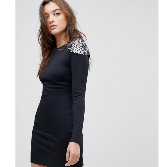 Embellished Shoulder Bodycon Open Back Mini Dress. Brand New