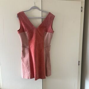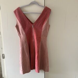 NWOT ASOS Suede V-neckline two tone shades of pink Color block design Zip back fastening Fit and flare shape mini dress with front pockets size 10