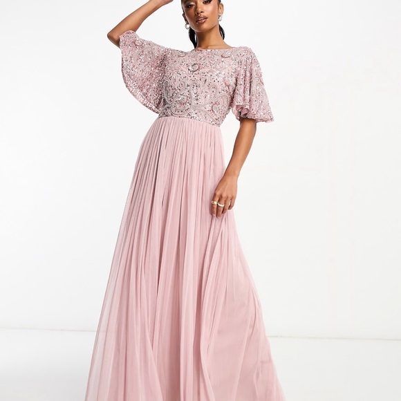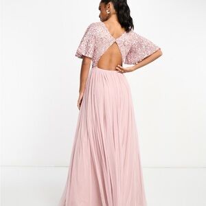 Beauut Petite Bridesmaid embellished maxi dress with open back detail in frosted pink. Gorgeous dress. Brand new with tag.