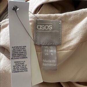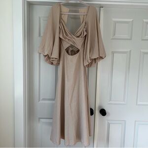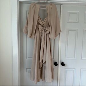 NWT ASOS linen blend puff sleeve Kris Kross open back back and front midi dress with bow tie at back of dress. Size 6 ( best fits a medium)