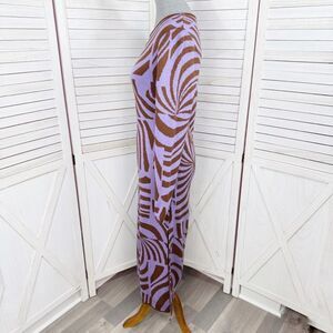 ASOS Abstract Swirl Print Knit Midi Sweater Sheath Dress Purple Brown 8