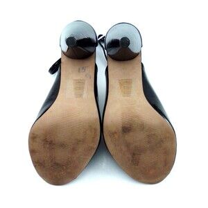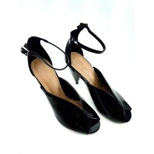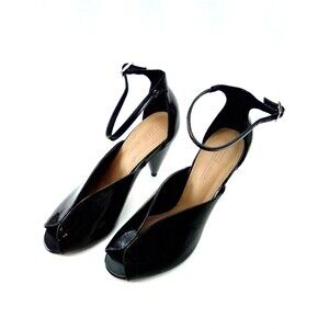 ASOS Ankle Strap Close Peep Toe Patent Leather Black 4'' Fat Cone Heels Size 7