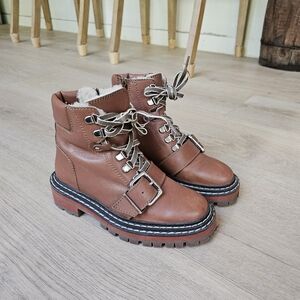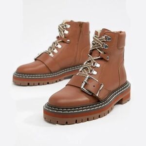 ASOS Design Archie Premium Leather Chunky Hiker Ankle Boots Tan/Brown. These are in like new condition. Super cute, edgy style with lace up combat boot look.