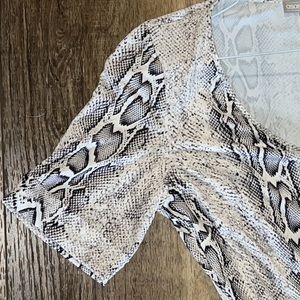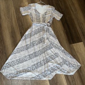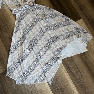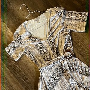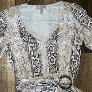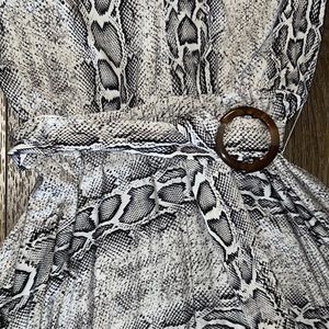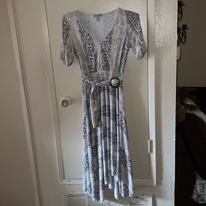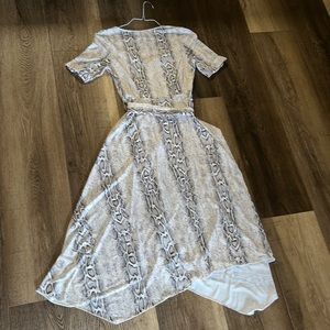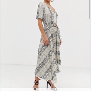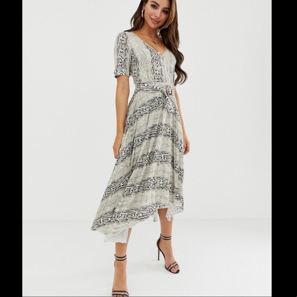 ASOS design V-neck asymmetrical midi dress and belt in snake print.