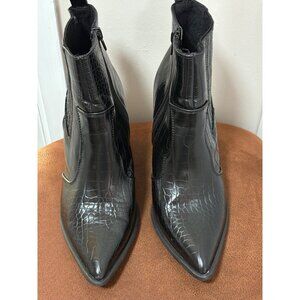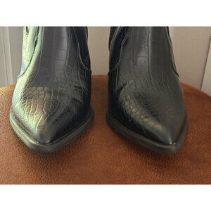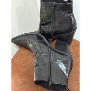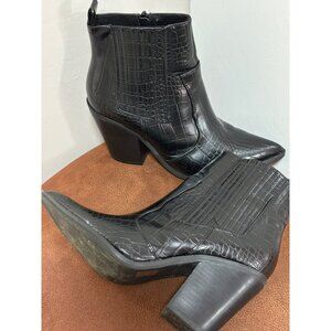 ASOS BLACK ANKLE BOOTS WOMENS SZ 7 CROC PRINT ANIMAL TEXTURE WESTERN CASUAL ZIP