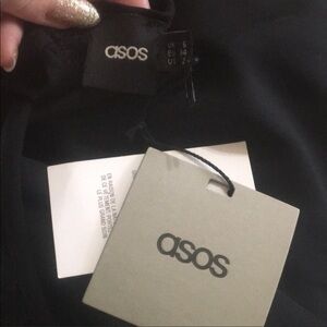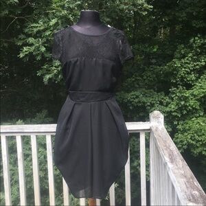 ASOS CHIFFON WITH lace at soft neckline. FULLY LINED with chiffon overlay. Belted band waist with elastic in back fro a comfy fit. Sight pleat, short soft lace sleeves and soft lace Décolletage. Size 2 measurements laying flat are approximately 14” bust , 12.5” waist 33.5” total length
