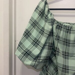 Cute balloon short sleeve top in color mint with black lines. Ties on the side that ruched. In excellent condition.
