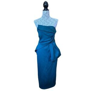 ASOS Bandeau Fold Bow Front Scuba Midi Dress Dark Green Size 10