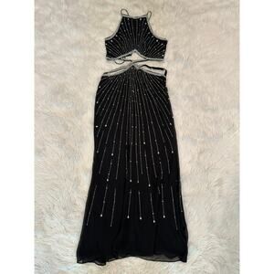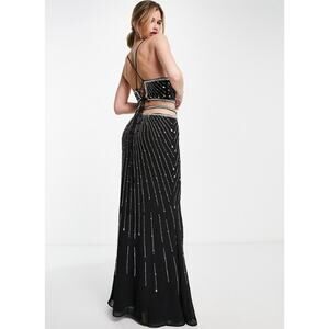 ASOS Beaded Cut Out Maxi Dress Strappy Lace Up Backless Sparkle Prom Gown Black