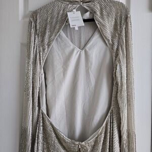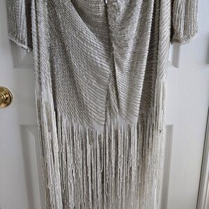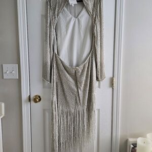 ASOS Beaded Long-Sleeve Open Back Asymmetrical Fringe Dress