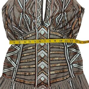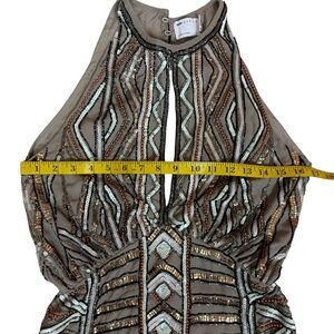 Chic ASOS dress with intricate beadwork. Features beige and white tones dress in good condition.