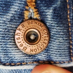 Bershka Vintage Inspired Cut Off denim jean short shorts with southwestern tapestry trim on pockets, back, and side seams.