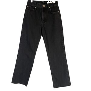ASOS Black Cotton Blend Raw Hem Wide Leg Denim Jeans Women SZ 26
