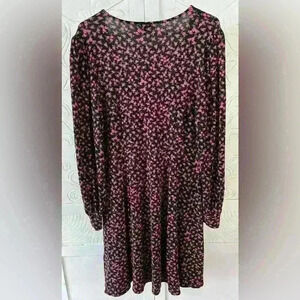 ASOS Black Long Sleeve Dress w small floral pattern 〰️ Button detail 〰️ Sz 10 Tall