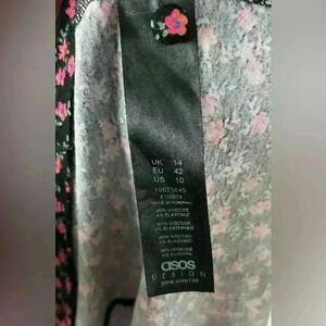 ASOS Black Dress w mini floral pattern Y2K 90s Sz 10 Tall Deep V Neck