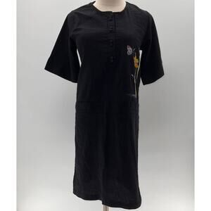 ASOS Black Flower Embroidered 3/4 Sleeve Knee Length Dress- M